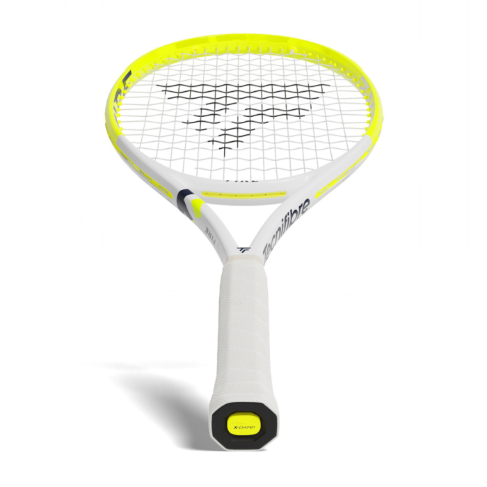 So funktioniert es Am unteren Ende des Griffs befindet sich ein Stahlpfropfen in einem Elastomerbeutel, der sich bei jedem Aufprall des Balls gegenläufig der Kraft bewegt. Das Ergebnis: 36% weniger schädliche Vibrationen für den Arm und weniger Ermüdung.Das neue FIRE 300 Tennisracket für Erwachsene bietet noch mehr Power als die vorherige Produktlinie!Zunächst einmal wurde die Ergonomie der Rahmensektionen überarbeitet, die nun quadratischer und um 5% dünner sind, um mehr Stabilität und Kontrolle der Power zu gewährleisten.Zudem wurde die Gewichtsverteilung geändert, um den Trends des modernen Tennis gerecht zu werden. Das Gewicht wurde von den Rändern zur Mitte des Rahmens verlagert, um das Swingweight zu reduzieren und die Beschleunigung des Racketkopfes zu optimieren. Maximale Power und Handlichkeit machen ihn zu einem perfekten Racket, das den Anforderungen des modernen Tennisspielers entspricht!Um die Leistung noch weiter zu steigern, wurde die Form des Griffs verfeinert. Ziel ist es, die Kanten besser zu spüren, um den Griffwechsel zu erleichtern.Alles in allem ist das TECNIFIBRE Tennisracket für Erwachsene FIRE 300 Weiß & Gelb 645cm² das ideale Produkt für modernes Tennis, kraftvoll mit einzigartiger Komfort-Technologie und super handlich.